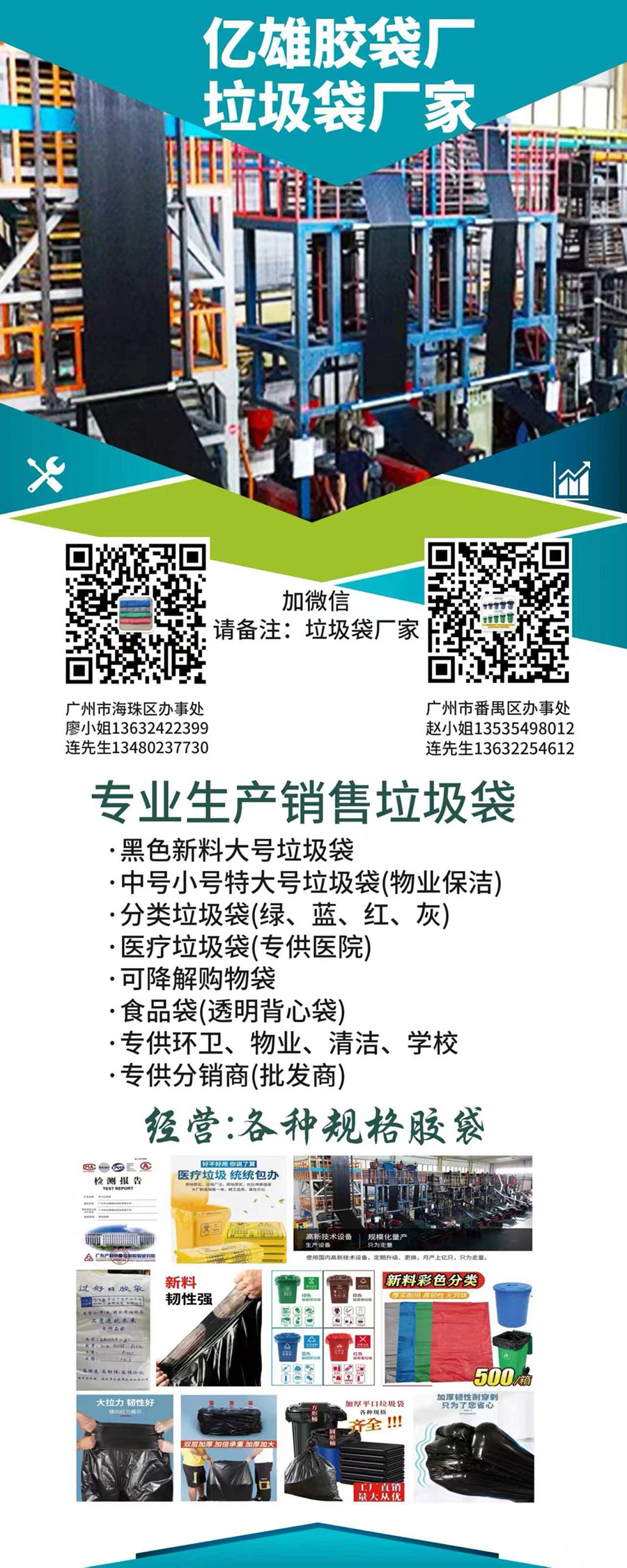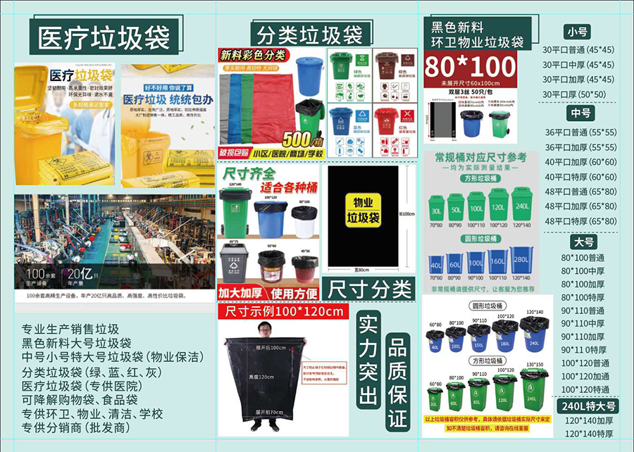 專業(yè)生產(chǎn)大號(hào)垃圾袋、特大號(hào)垃圾袋、中小號(hào)平口垃圾袋等